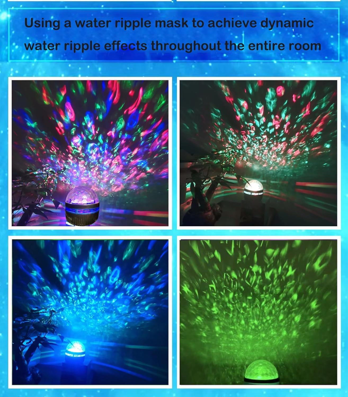 The Latest LED Projection Light Two in One:Our latest LED projection lights are different from other styles and have two different covers that can be converted, one is the warm water ripple, and the other is the wonderful aurora