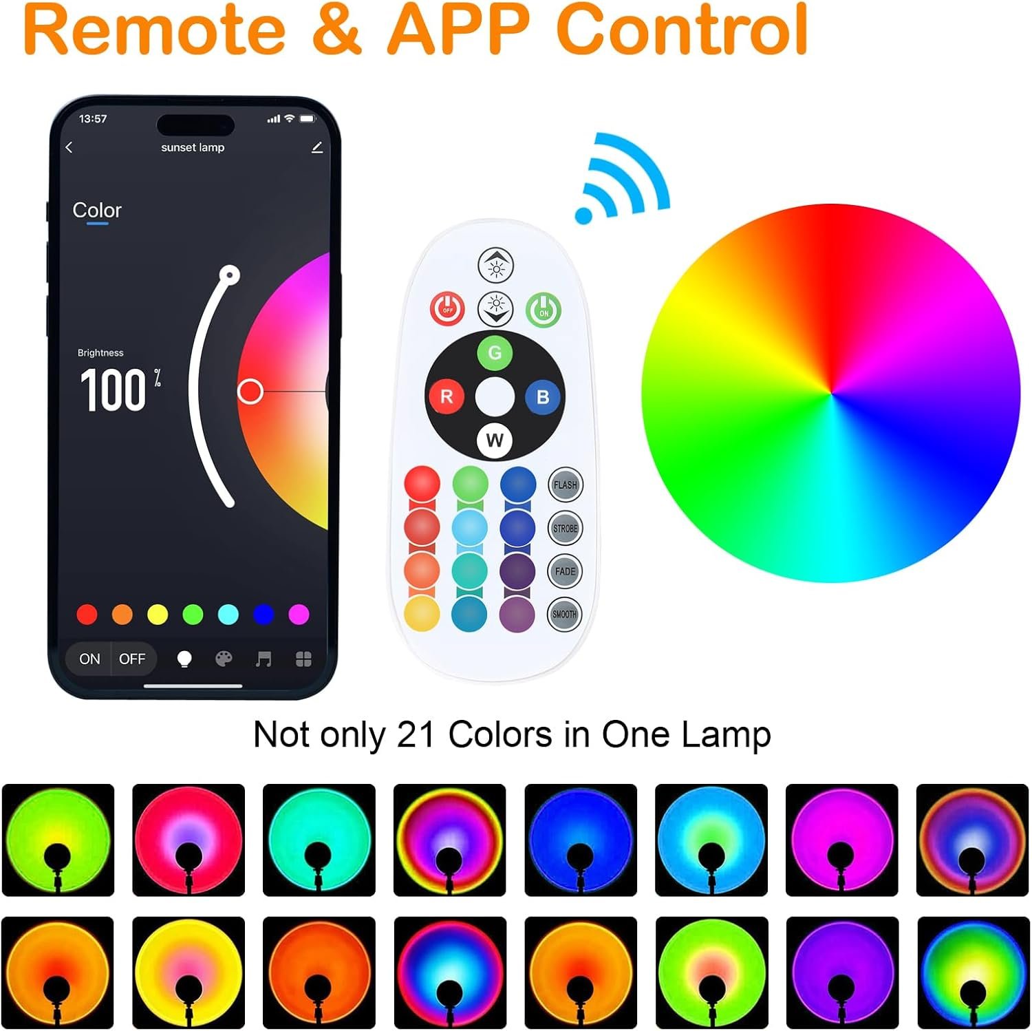 Sunset LED Lamp Projector, 21 Colors Changing App & Remote Control Mood Lighting, Music Sync Ambiance Lighting, Sunset Lamp for Bedroom, Living Room, Aesthetic Room Decor, Birthday Gifts for Women
