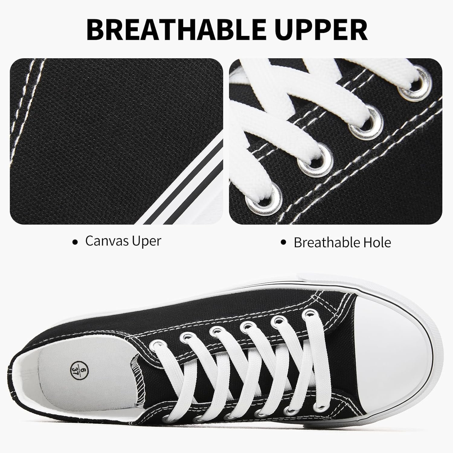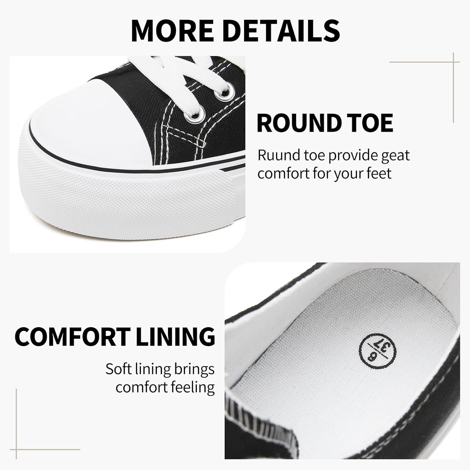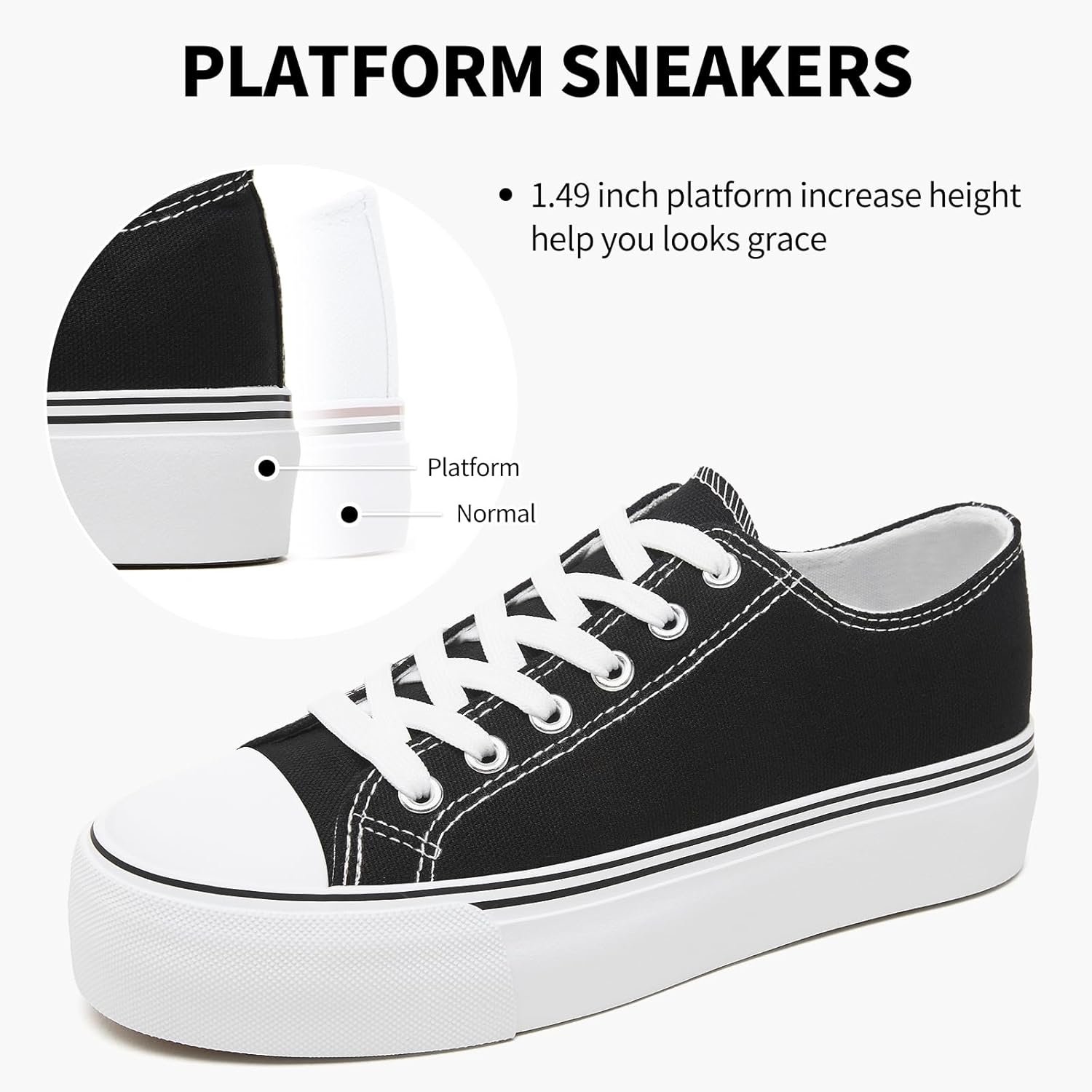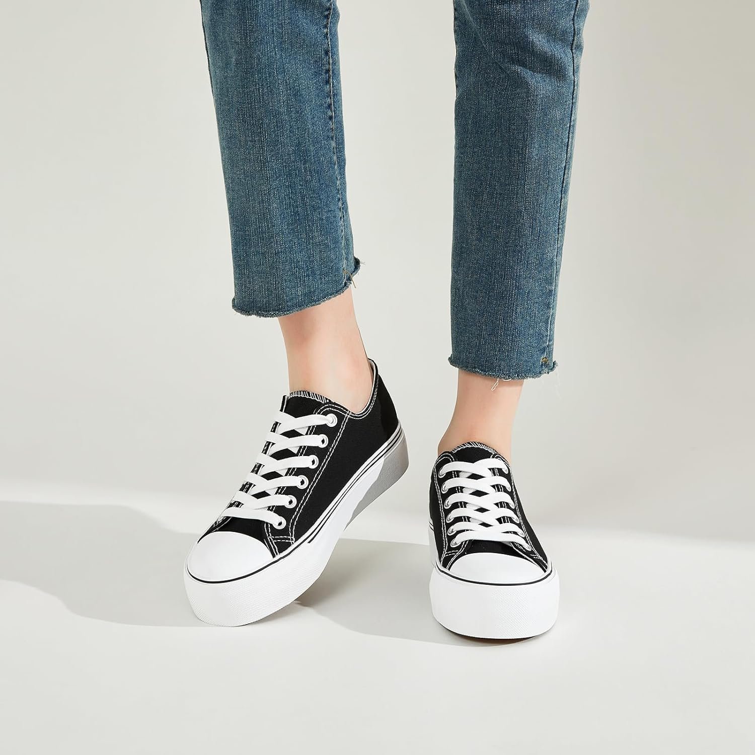SERNIAL Womens White Platform Sneakers Low Top Platform Shoes Black Canvas Shoes for Women