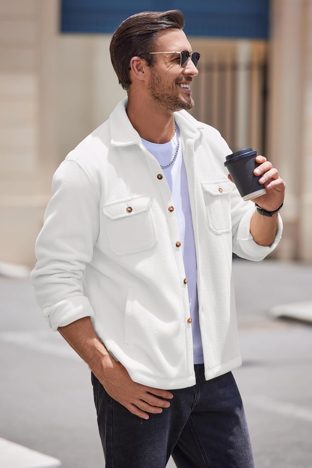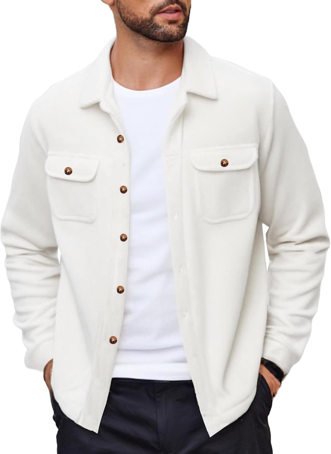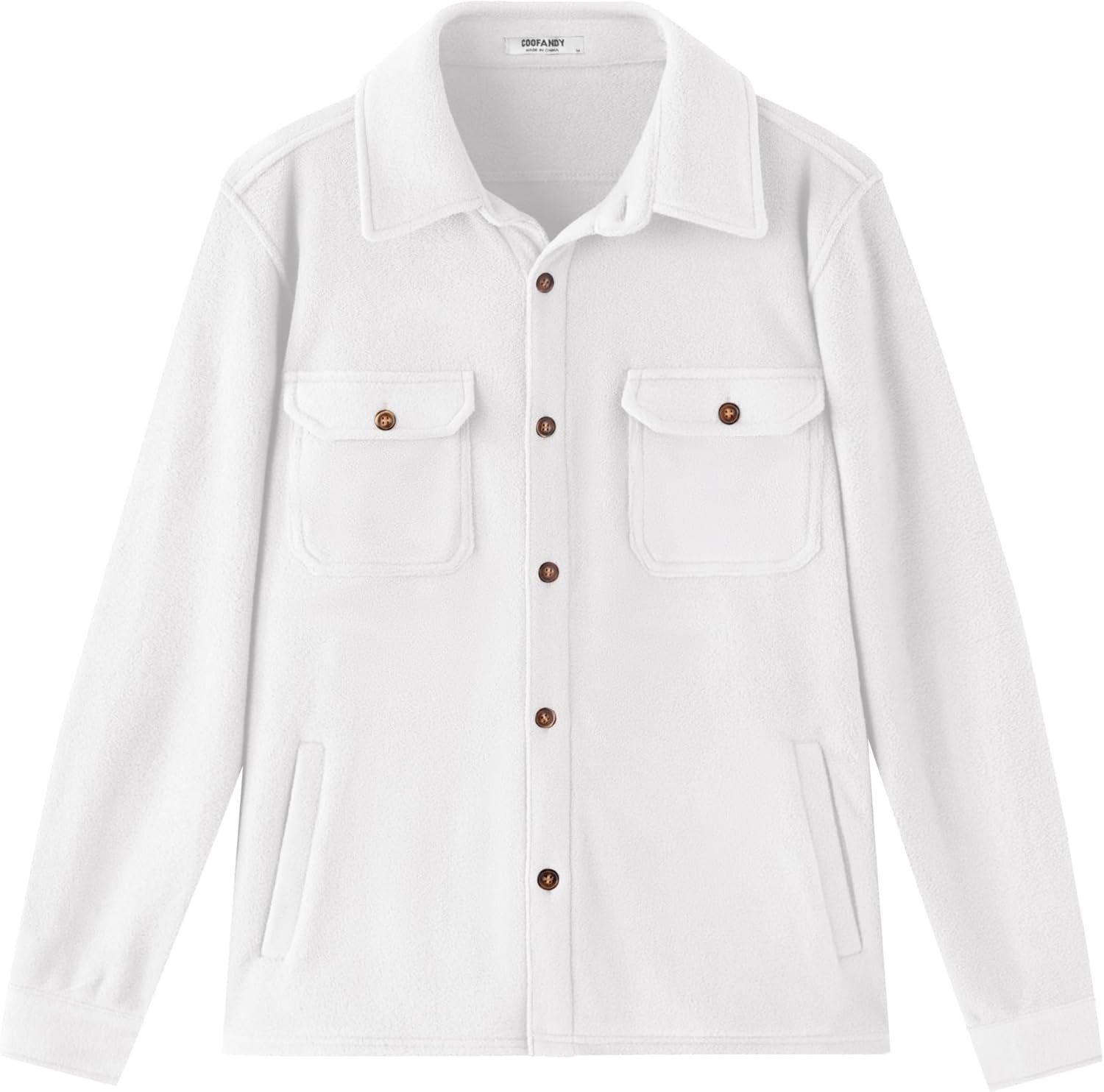 COOFANDY Men’s Polar Fleece Shacket Long Sleeve Casual Button Down Shirt Jacket with Pockets