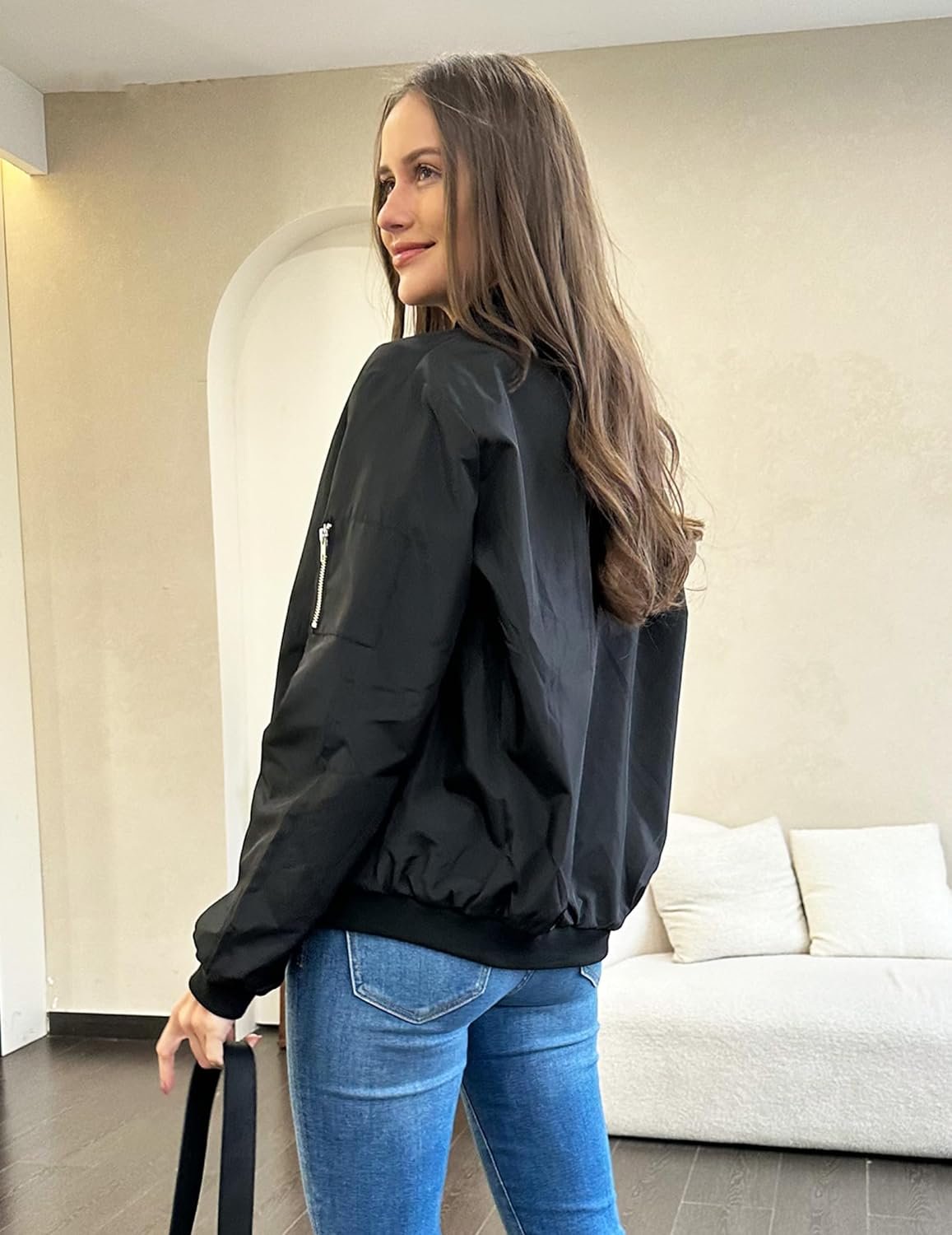 Zeagoo Women’s Bomber Jacket Casual Coat Zip Up Outerwear Windbreaker with Pockets S-XXL